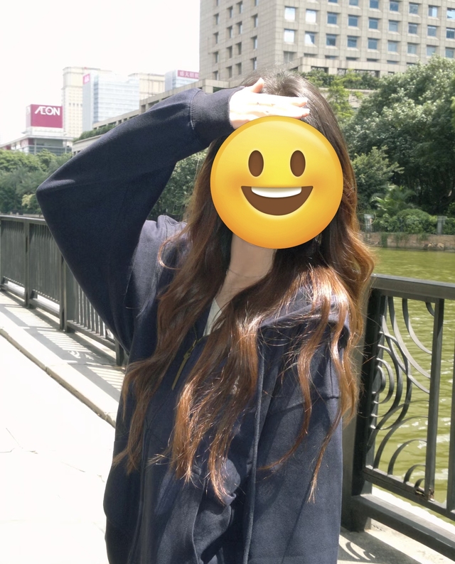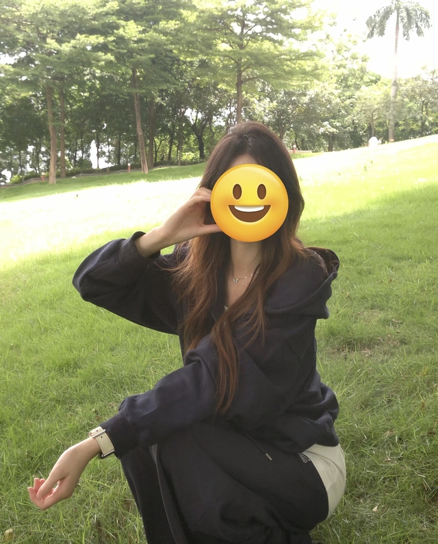林唯一(调整姿势,双手自然地搭在膝盖上,头微微歪向一侧,表情甜美又不失俏皮)