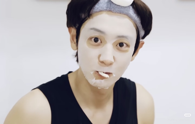 朴灿烈啊?你说啥可爱啊?(声音被面膜闷住,听起来有些含糊)