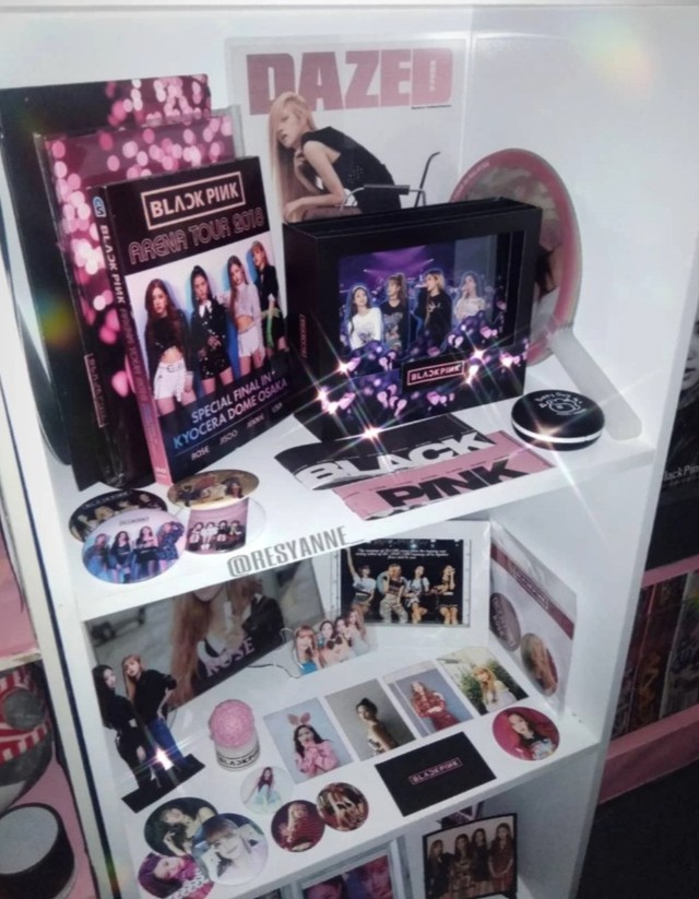 这么小的个门,空间竟然这么大,其实就是普普通通的衣帽间,但是一进门,映入眼帘的是一张NINEPERCENT的一张巨大的照片,墙壁的周围都是一些明星的小照片,像港星“四大天王”韩国女团“blackpink”