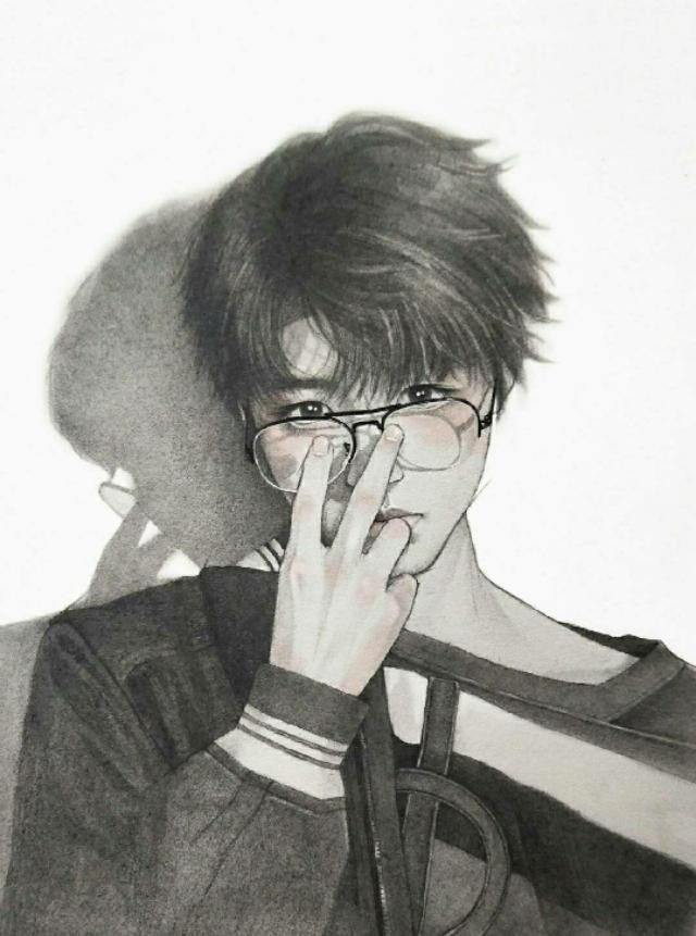 杨曃兮的手轻轻地抚上了王俊凯高挺的鼻梁