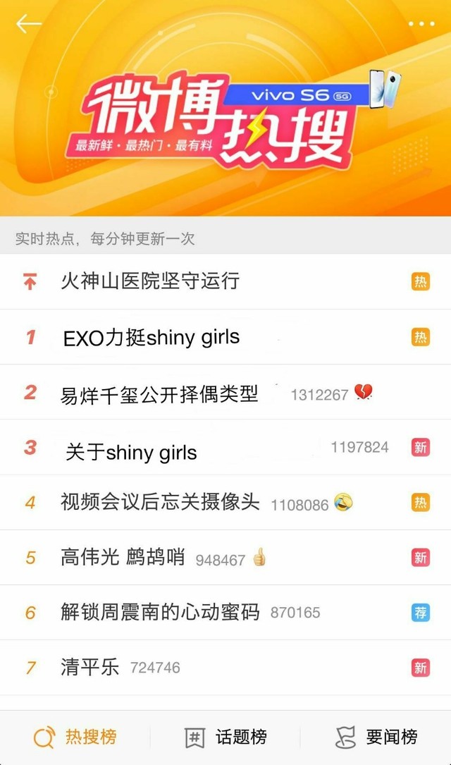 她们趁着这个空档,点开了热搜第一:EXO力挺shinygirls.