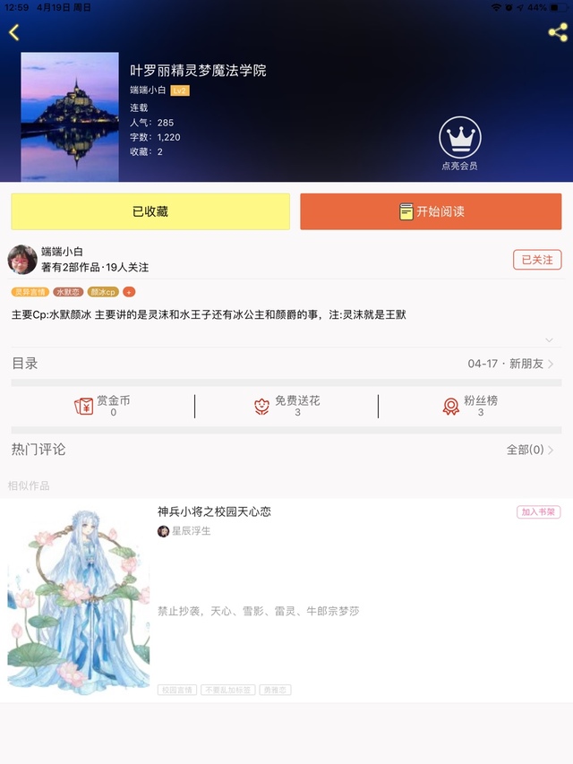 我说一下啊,我又写了一部作品,是叶罗丽魔法学院