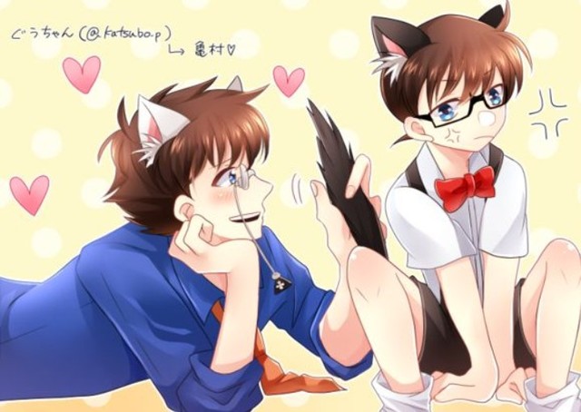 协商好后他们开是给柯南做造型。