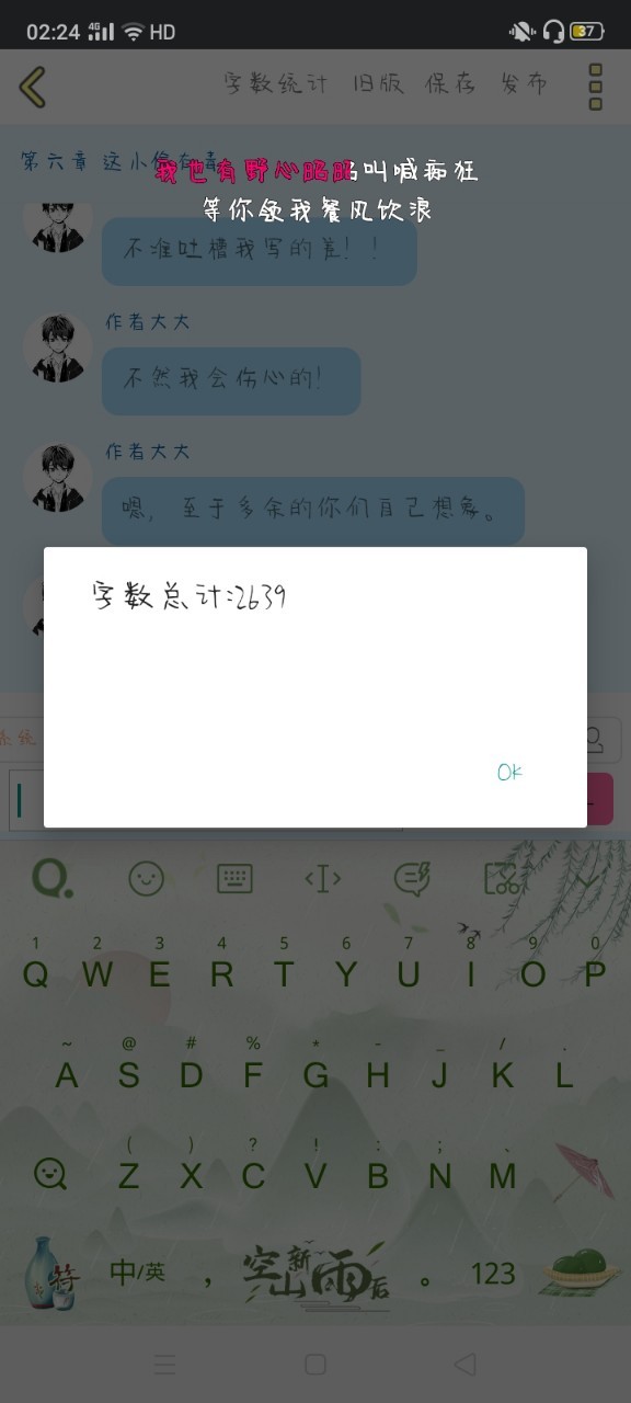 作者大大好了,然后这是字数。