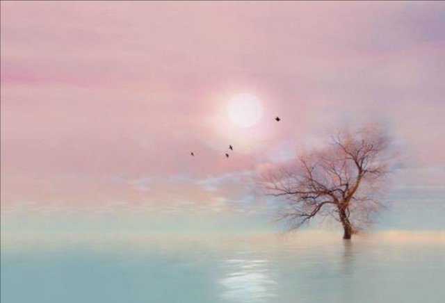 蓝辞言醒来,发现自己置身于一片湖水之中,蔚蓝蔚蓝的,秃秃的树枝在七彩斑斓晚霞衬托下,显得一点都不荒凉,反而好像天空就是它的树叶