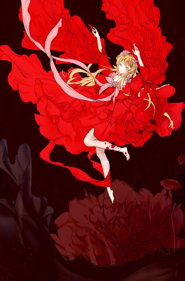 第二张是梦璐,画的是,他经历过绝望,无奈,最后堕入深渊的图。我是第一次画这些呢,右下角也有我的名字。