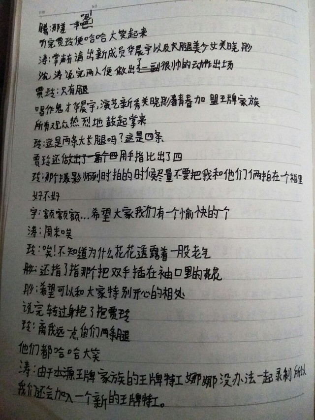 作者大大这些都是我按节目他们说的话然后写在本子上然后再在手机上给你们码字所以不是抄袭