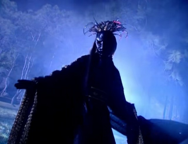 黑山老妖对小倩说:“既然你不爱我,我就杀了你臭书生,让你们阴阳相隔,看你们怎么在一起”说完笑了起来