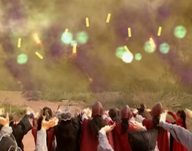 三娘、流云力战三宝,却仍离不开结界,然而三娘坚持离去,就在三娘差点被三宝击杀之际,若逸燕、赤霞、采臣、小倩终于赶到,众人合力对付三宝,此时,阴世幽泉爆发魔气,魔气席卷整个森林,赤霞等人眼见已无路可退,魔气正如洪水猛兽般向众人袭来。