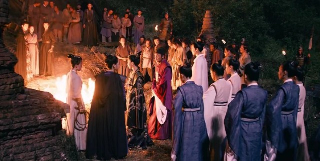 在僵持不下之际,若逸发现地下冒出了黑乎乎的水,众人一看竟然是猛火油。