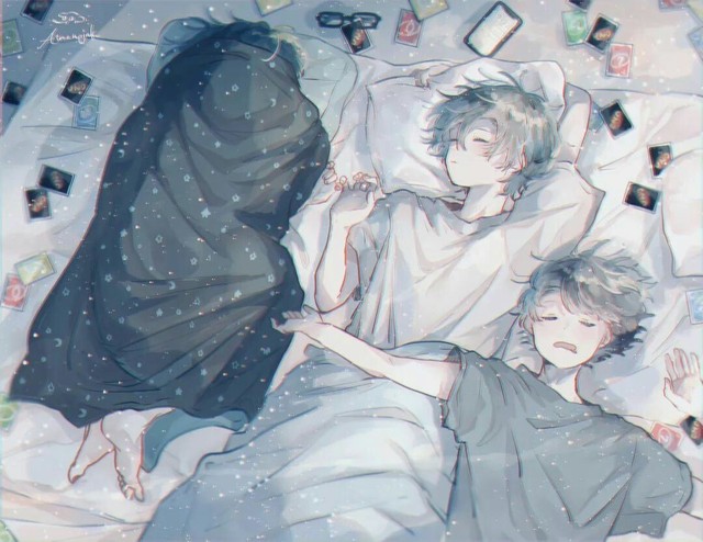 米迦在优酱床边坐着看着他睡觉,奇了个怪了,优酱睡这么死?都晚上了啊。