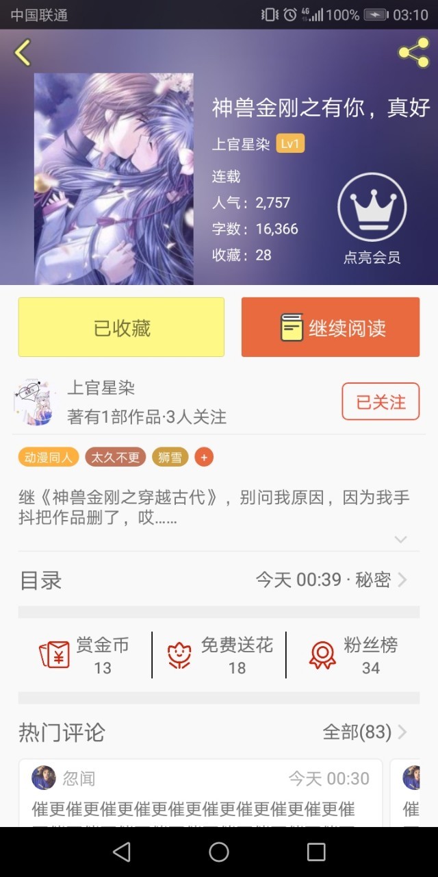 Xue·陌辞.上官星染,我每天都会催你更文的。