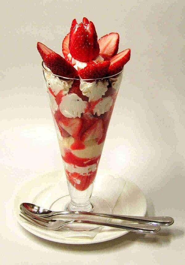 星宫莓走到坐位上,看见桌上放着的好吃的,还有她最爱的草莓巴菲,两眼放光地说:"草莓芭菲,啊啊……。"