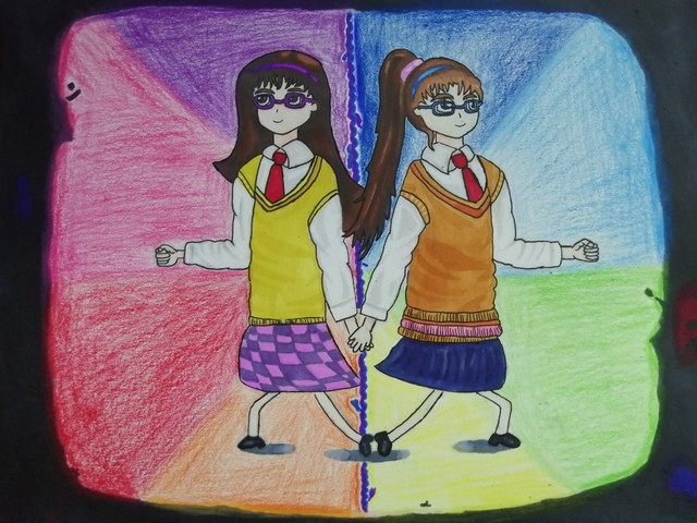 蓝伊便若无其事地走了过去,同学们的眼光都集中在她一个人身上,随后又惊讶地发现了一个“陌生”女孩,林原樱。