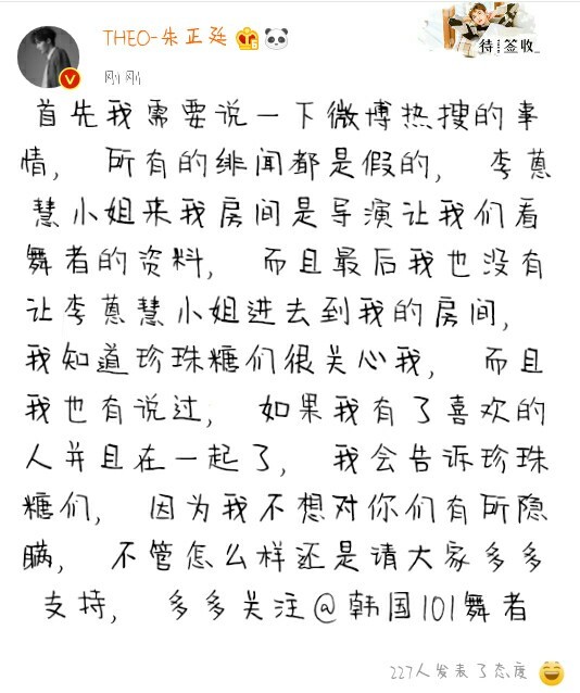 朱正廷还发了一条微博呢!