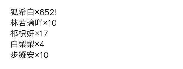 阮知葵“哇惹,感谢狐希白小宝贝的六百多朵花花,我爱你!”