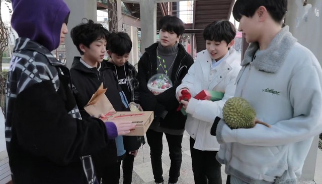 六个人都捧着自己的礼物等待着崔诗涵