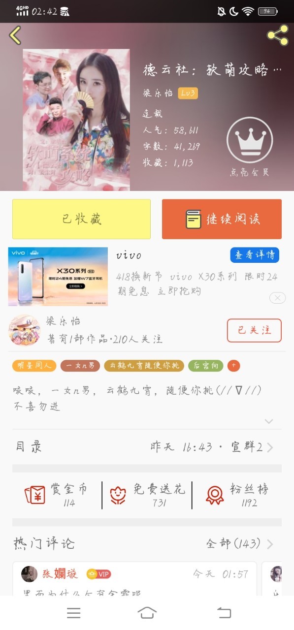 作者这几篇文写得很不错几乎都是一女N男的文有兴趣的话大家可以去看一看,但要是不喜欢的话也不要去说这文那儿那儿不好。因为你既不是她爹也不是她妈,所以你管不着别人是写好写坏。写好你就看,你觉得她写的好你就看下去你要是觉得不好看会有人去看,而且点左上角慢走不送!!!