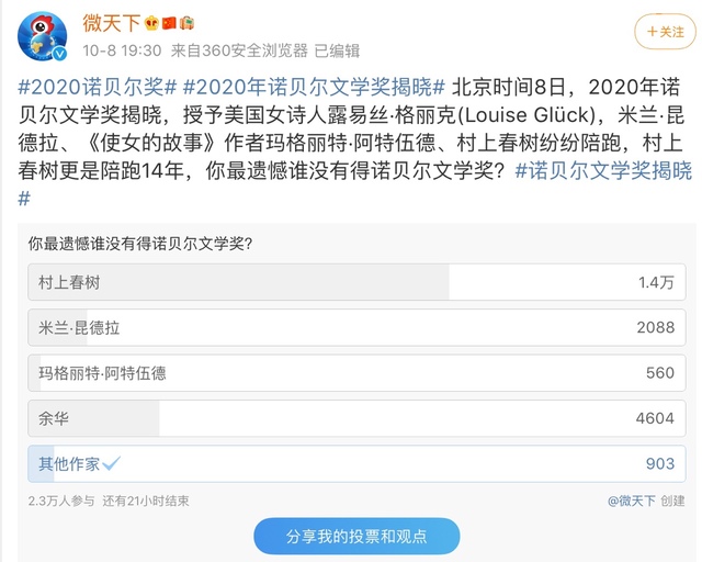 伊黑怕HEIPA我还以为这次诺贝尔文学奖里面有我