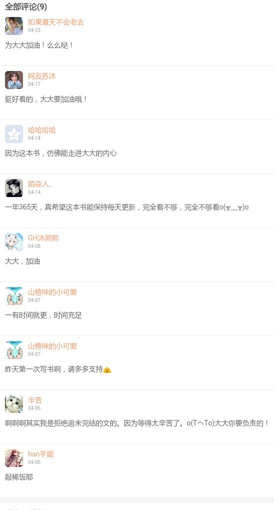 作者大大谢谢han芊熠,半苦,GH沐熙熙,陌森人、,哈哈哈哈,网友苏沐,如果夏天不会老去的评论,谢谢大家的支持!
