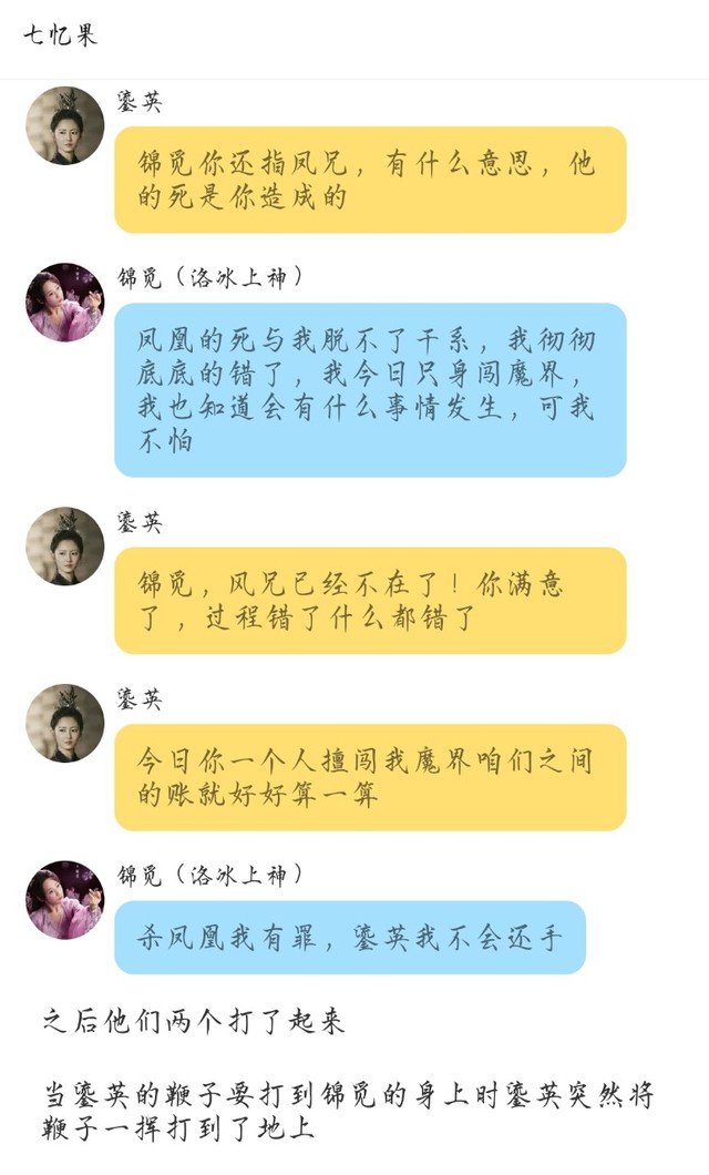 鎏英凤兄,润玉,紫宣,凌楚冤死,跟你们四个人都有关系但是收场的不应该是我而是你们如果你想去弥补你就去忘川河畔看看有没有凤兄虽然我知道凤兄是神,忘川河畔中不会有但是你若愿意试试大可前去