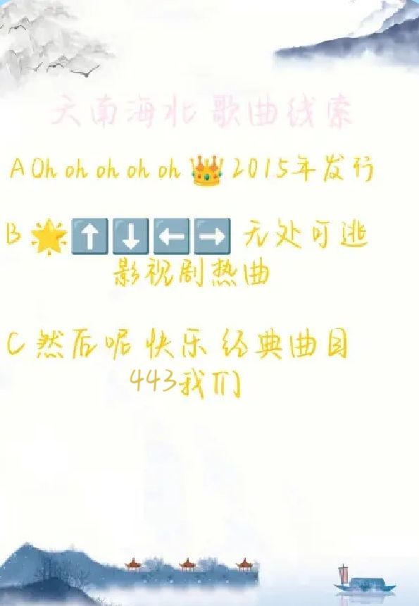 印子月那现在猜出来两首歌,B和C出来了,A是什么