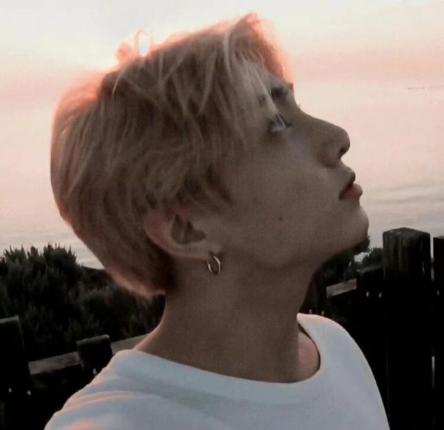 晚霞在田柾国头顶的发丝镀上一层粉色的边,风景很美,但焦点却是男孩儿。