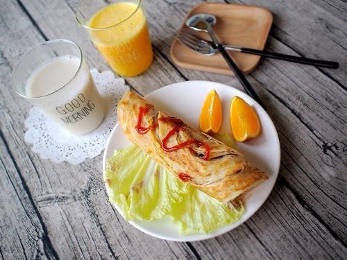 终于,早餐在两人的努力下大功告成。