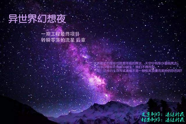 “那是多么壮丽的景象啊……”蕾雅不经意地抬起头望向夜空,“原来是其消亡令人感到壮丽而因此浪漫吗?”