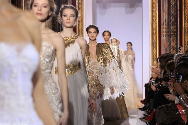一排排模特儿穿着最新的高定服装,在T台上缓步走着,显然,模特们今天走得比往常都要小心。因为她们知道,今天来看这场show的都是京城最权威,最富有的少爷小姐们。要是出了什么差错她们可是拿命也赔不起。