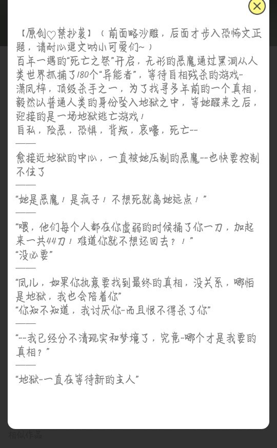 欢爷书名,封面ok,是恐怖的类型没错了