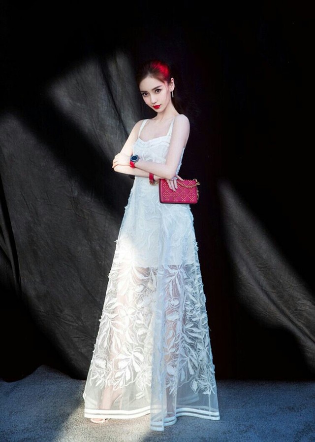雪颖穿着一身雪白的裙子,修长的腿被一层薄纱裙摆显示的若隐若现,这一套白色长裙被雪颖穿得好看极了。