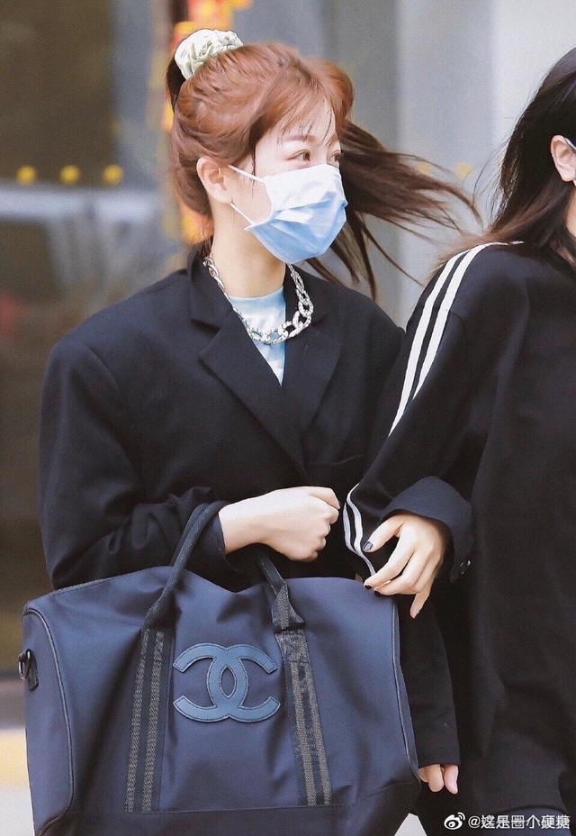 回归这天陈允恩穿着一件天蓝色卫衣外穿一件黑色西装外套,一条银色的锁链项链,绿色的发圈将她的秀发盘起,提着蓝色的行李包,蓝色的口罩与卫衣颜色相呼应,整套造型总体来说可爱又不失霸气