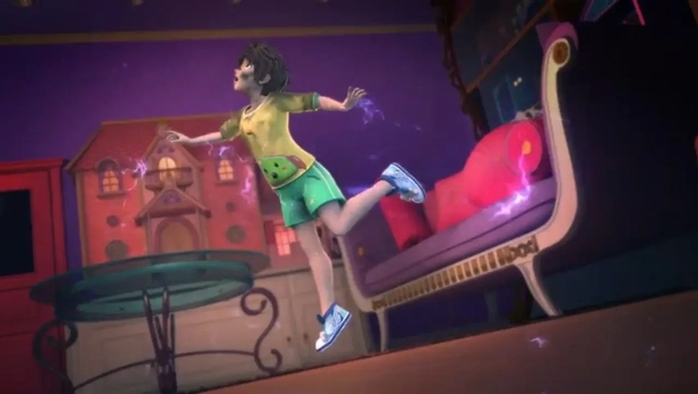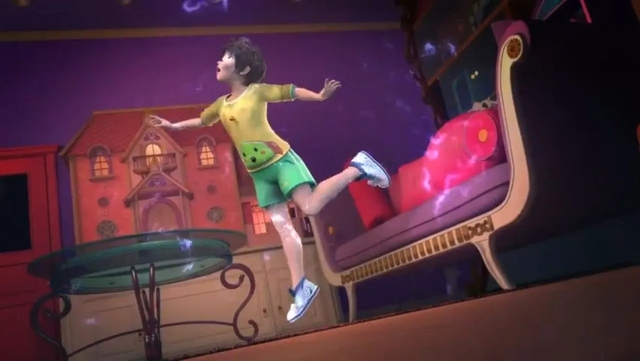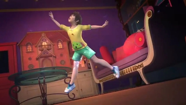 男孩高兴的跳了起来