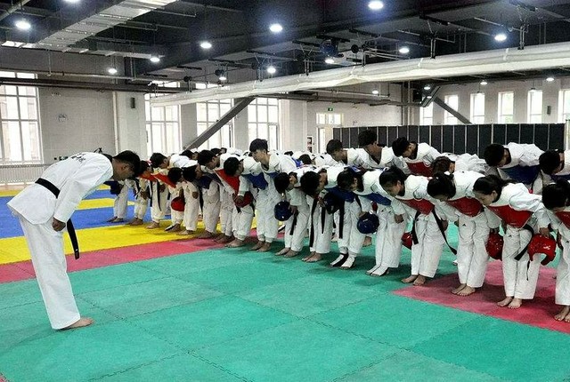全体同学整齐划一弯身行礼: