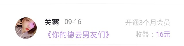万分感谢 关寒 大大的会员~~么么哒~~~不器一定继续努力快马加鞭~~