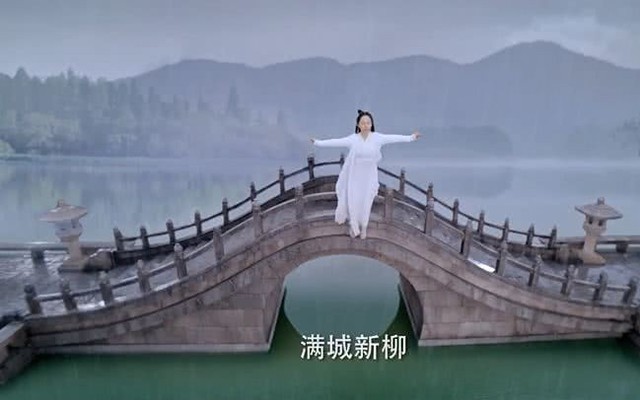 终于……她好似下定了重大决心似的,手持兰花指,飞身到湖水上面,绝望地闭上眼睛,嘴角牵出一抹苍凉的笑意