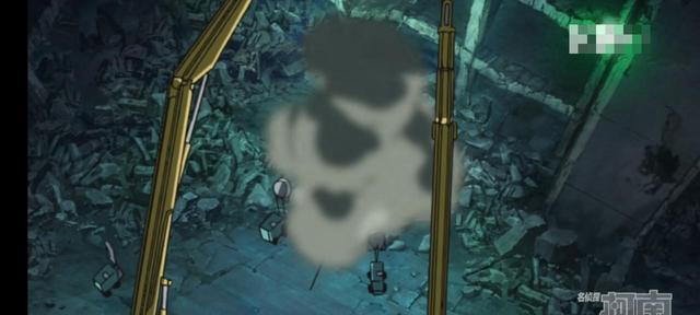 待浓烟散去,那人影就是海老藏先生,而他抱着的就是柯南 。