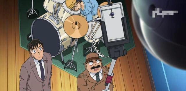 目暮十三原来如此,你们为了把演奏的过程录下来,就像这样把手机安在自拍杆上,再把杆子固定在话筒上。