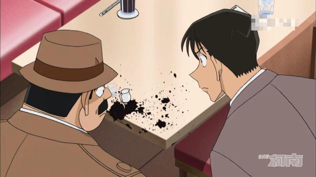 高木涉而且柯南和服部的脸上却沾上了飞溅出来的血,他们两个人所在的桌上也都溅到了血。