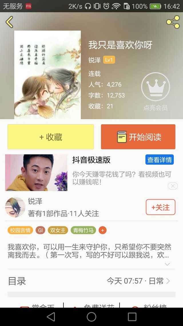作者锐泽大大的《我只是喜欢你呀》大家可以去看看哦!