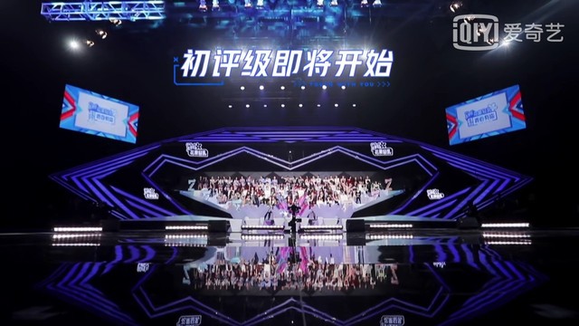 所有的练习生全部坐在看台上,她们聚在一起聊着天,看起来都很紧张。