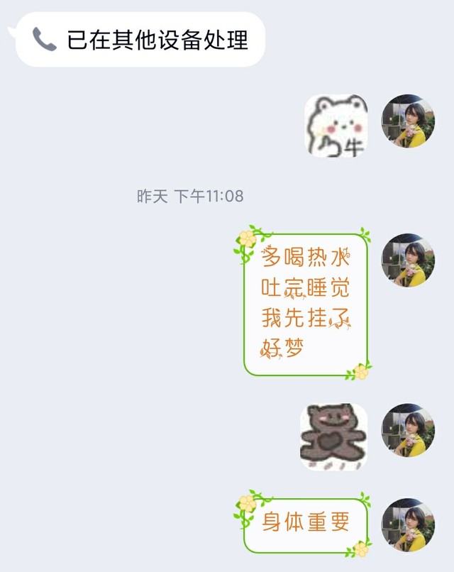 于是我挂了电话,又觉得不太好,想了想发了两句关照的话。