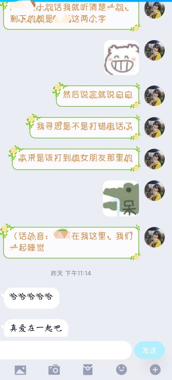 是的,我和他的对话,大多是他那边@#%&,我只能拼命去辩别,最后只辩别出良姬这两个字。