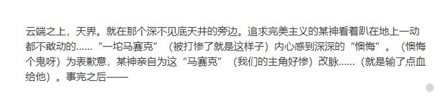 寒枝其实我觉得这里写的有点幼稚,尤其是这颜文字,你本来就言语不是特别好,可结果你硬是加了颜文字,这就以至于你这段写的让我感觉有些尬。