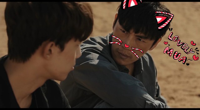 这时候吴邪来到了这边,看到黎簇和嘎鲁扬沙子,吴邪直径走到黎簇旁边坐下边说道