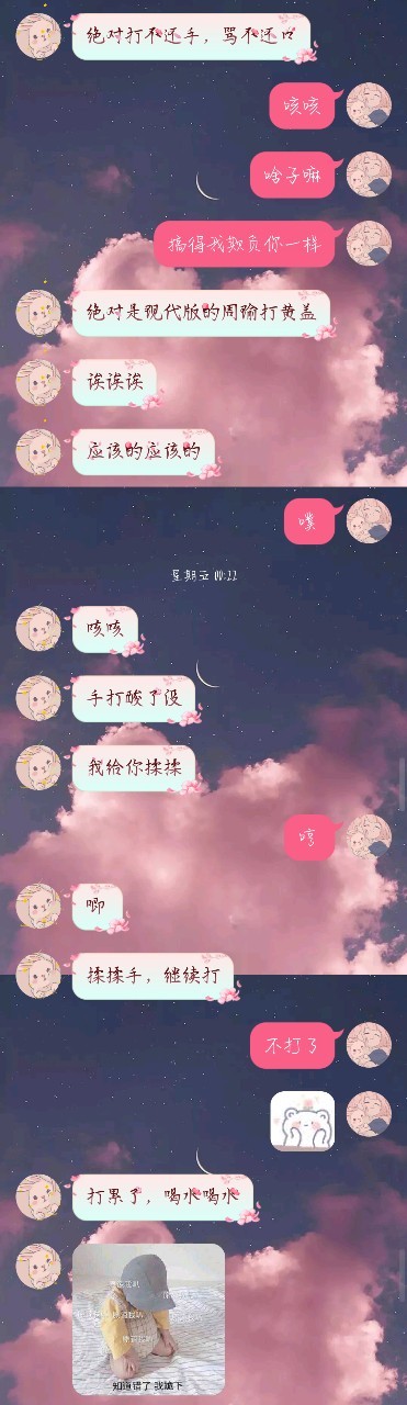之前和W先生一起打游戏,单挑的那种,然后我被捶了,刚好我亲戚来了,心情超级差,然后下面是聊天记录有点长,慢慢看嗷