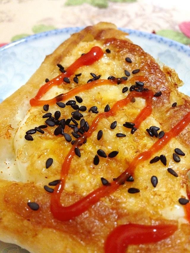 只见从她手里递出了一块烧饼,而饼上的红色竟是酱料的颜色。