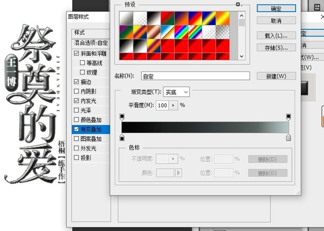 选择一个和封面相符合的渐变,如果没有这样的渐变,就选择一个类似的自己调,调的话主要是选择色标选取颜色,移动色标来达到自己想要的效果,也可直接在图层上直接拉,这个要自己摸索。