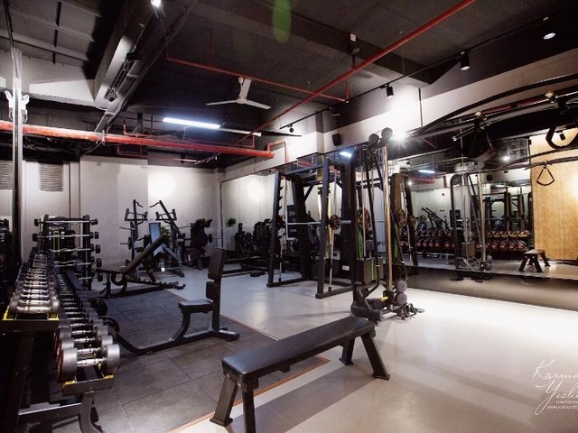接着往前走,各式各样的健身器材入目